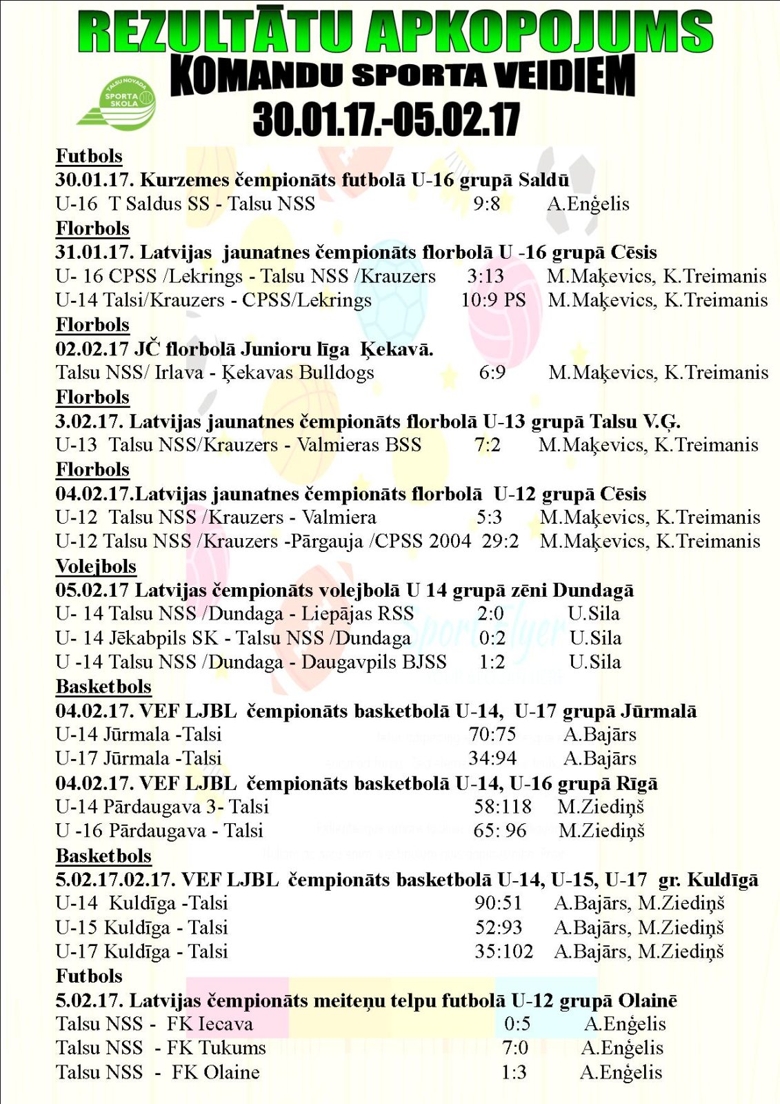11.februārī Rīgā norisinājās Rīgas ziemas čempionāts vieglatlētikā. Talsu novada Sporta skolu sacensībās pārstāvēja Mārča Štrobindera audzēkņi Miks Oskerko un Edvards…